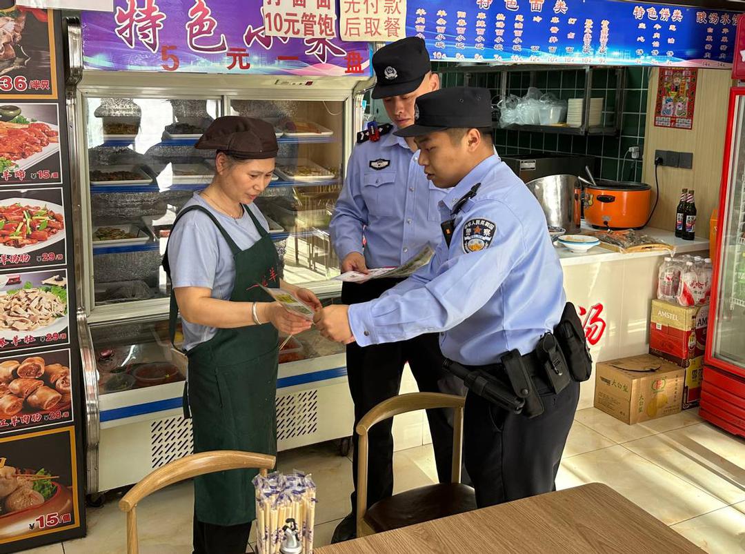 在走访辖区商户的过程中,民警通过方法宣传单、张贴安全管理通告、现场答疑等方式,从如何排查店铺内的“小火星”,到油锅起火、电器短路的应急处置方法,手把手教商户掌握“保命技能”。针对商户普遍存在的“会有灭火器但不会用”问题,民警现场演示灭火器的使用方法,指导商户如何正确使用灭火器。同时通过讲解典型火灾事故案例,强化警示效果,督促商户落实安全生产责任,加强员工消防安全培训,杜绝违规动火行为,切实让商户“听得见、看得懂、记得牢”。