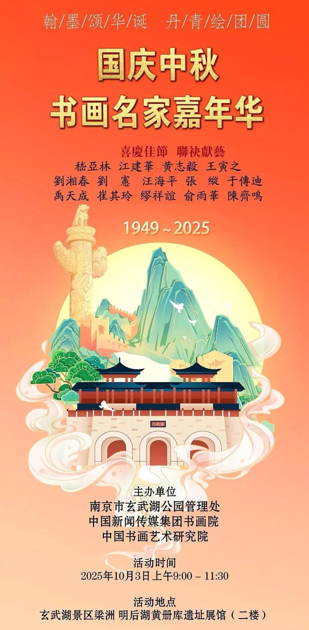 嵇亚林说:“国庆的家国情怀、中秋的团圆意韵,或许正能化作我们笔下的山河气象、纸上的温情笔墨——无论是绘就玄武秋波的灵动,还是书写古今诗词的豪情,这份对传统文化的热爱、对生活之美的追求,都会让此刻的相聚更有意义。”