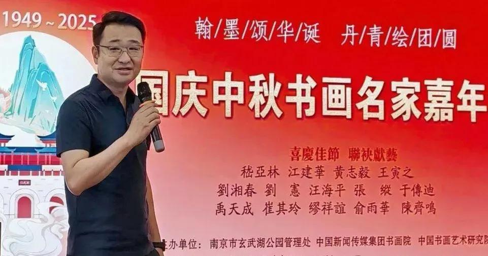 嵇亚林说:“恰逢国庆、中秋双节同庆的美好时节,能和各位相聚在钟灵毓秀的玄武湖公园,共赴这场笔墨之约,我既激动又荣幸。先借此机会,向在座的各位同仁和朋友道一声:双节快乐,阖家安康!”