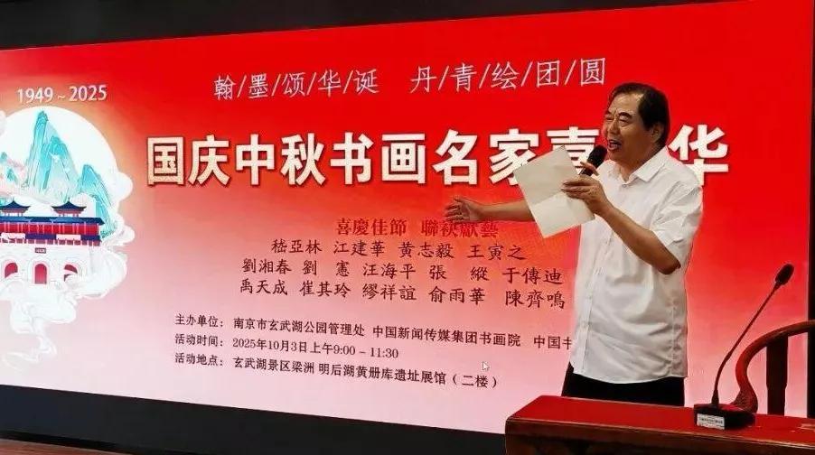 嵇亚林最后表示:“我们期盼在交流中碰撞出更多灵感,让这笔墨香伴着双节的喜庆、玄武湖的景致,成为今天最难忘的记忆。祝本次书画笔会圆满成功,祝各位同仁创作尽兴、收获满满!”